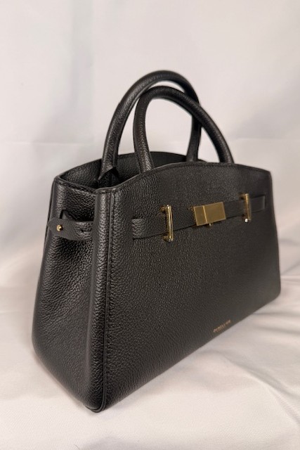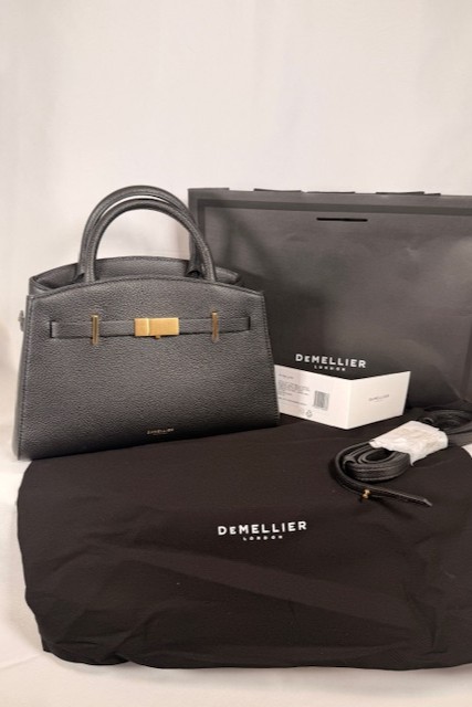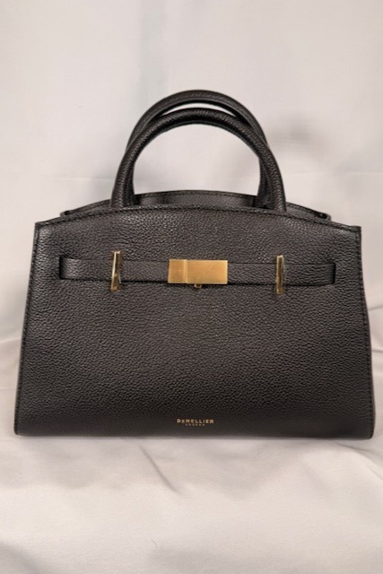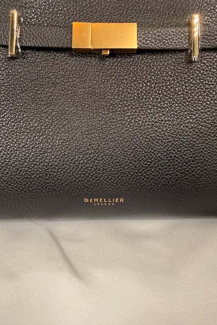 A modern icon of understated London luxury, the DeMellier Mini Hudson is defined by its structured silhouette, refined proportions, and signature gold-tone hardware. Crafted in smooth black leather, this piece offers a timeless aesthetic that transitions effortlessly from day to evening.