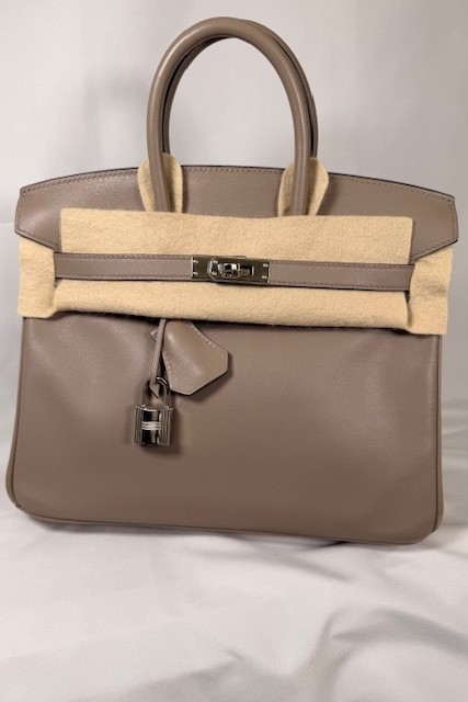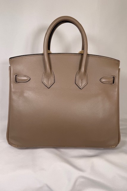 A refined Hermès Birkin 25 in the modern neutral shade Gris Asphalt, crafted in smooth Swift leather and finished with palladium hardware.